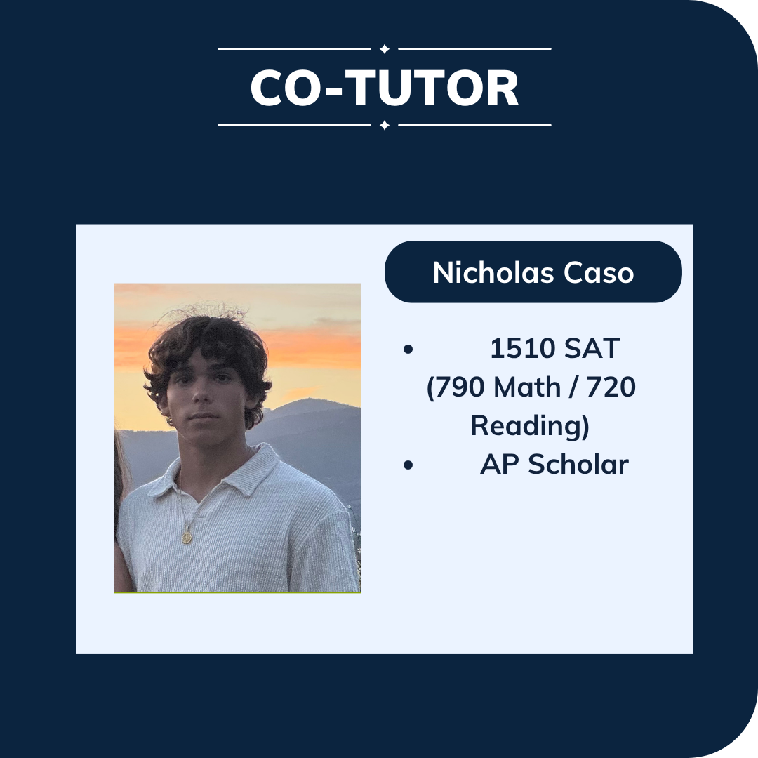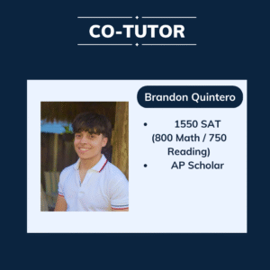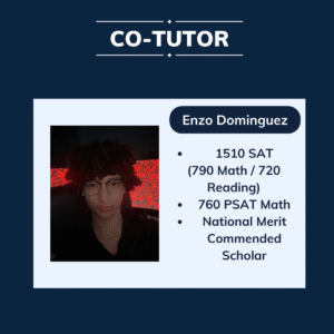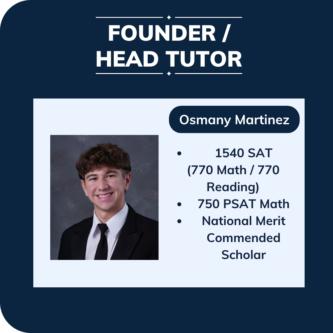 Founded as a small South Florida peer-tutoring service, SATHouse was created with one mission in mind. Providing affordable and high quality test-prep for students in its community. With the help of my co-tutors and course-makers: Brandon Quintero, Nicholas Caso, and Enzo Dominguez; SATHouse has been able to expand this community to new heights through the SATHouse website and our online presence. From basic level DESMOS skills and mathematical concepts to time-saving advice for the English portion of the test, SATHouse hopes to serve YOU in your test-prep journey.